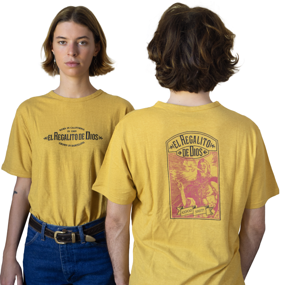 El tejido de las camisetas es de fibra de Hemp al 58%, producidas por THINKING MU. ¡Consíguela con su caja de regalo y dale una segunda vida!